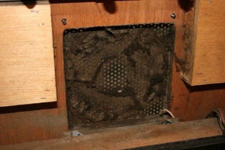 Le ventilateur du haut, du même modèle que le hachoir à viande du transformateur, est bruyant et encrassé.